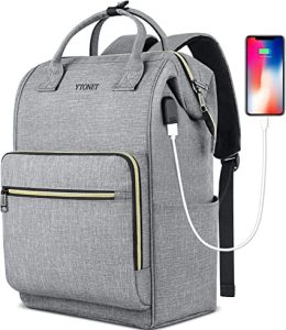 CLASSIC USB DESIGN – With a USB charging port extended on the side of the laptop bookbag and built-in a charging cable inside of the cute college backpack for women, it offers easy access to charge your phone when you are carrying this backpack purse on the road via connecting your power bank(POWER BANK is not included), Perfect as an electronic gift, computer back pack for women